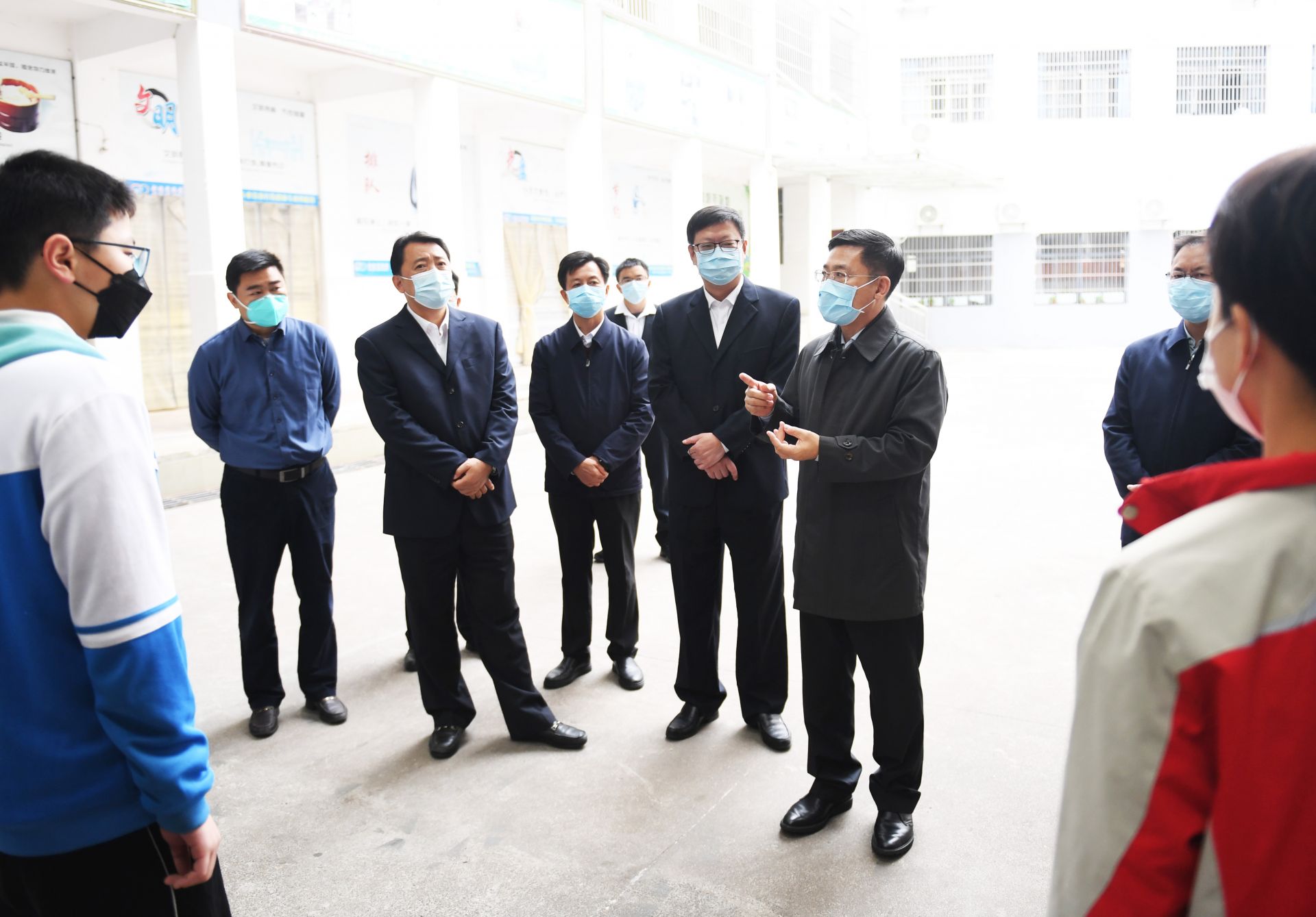 “大家一定要對新冠疫情和防控工作保持科學(xué)認(rèn)識,既不能輕視,更不要恐慌。”孟祥偉、楊軍叮囑師生,要堅定信心,正確看待疫情傳播規(guī)律,積極樂觀、主動配合做好健康監(jiān)測工作。學(xué)校防控專班要加強政策、業(yè)務(wù)學(xué)習(xí),帶頭科學(xué)、精準(zhǔn)、務(wù)實落實防護、監(jiān)測措施,不加碼、不過度。要切實做好學(xué)生生活保障和心理疏導(dǎo)工作,采取錯峰、分區(qū)等方式,安排師生加強戶外活動,既放松心情,也鍛煉身體,提高免疫力。要設(shè)身處地、換位思考,采取視頻通話、直播伙食等方式,加強學(xué)生和家長之間的聯(lián)系交流,真正讓學(xué)生安心、讓家長放心,齊心協(xié)力打贏這場疫情防控攻堅戰(zhàn)。