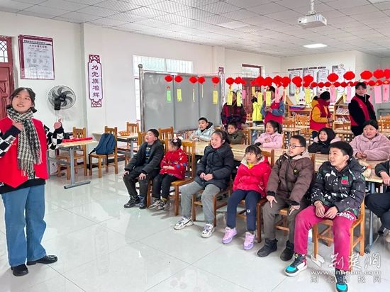大二護理專業(yè)的丁佳慧在2021年就加入了學(xué)校的“星火支教”團隊,寒假回到家鄉(xiāng)麻城后,她組建“閱而有味讀書會”。在春節(jié)期間,聯(lián)合麻城市公益組織——青力締造服務(wù)隊,一起走進麻城市三河口鎮(zhèn)碧楓沖村委會留守兒童之家,為30多個小朋友留守的兒童送去溫暖禮包,陪他們做游戲,并為他們帶去了別開生面的花燈制作課。