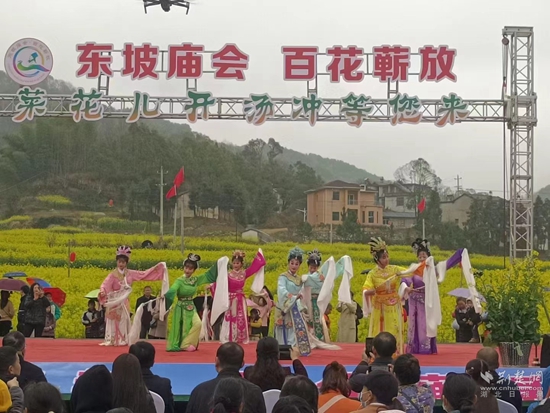 為持續(xù)推動?xùn)|坡廟會文化品牌在蘄春落地生根,該縣堅持以文塑旅、以文塑城、以旅彰文、以文化人工作導(dǎo)則,蘄春縣委宣傳部以“東坡廟會·百花蘄放”為載體,從群眾需求出發(fā),傾力打造覆蓋城鄉(xiāng)10場特色文化活動和12場文藝宣講活動,不僅豐富了群眾的精神文化生活,也讓群眾在觀看節(jié)目的同時,了解黨的政策、聆聽黨的聲音,真正將文化惠民、服務(wù)百姓落到實處。