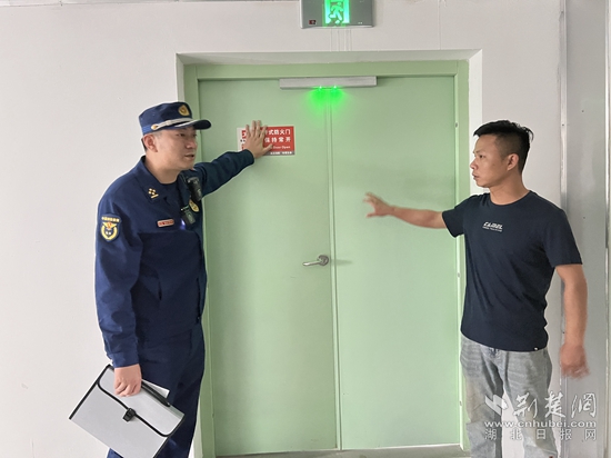 走進醫(yī)院大樓,在一扇正上方顯示“安全出口”的大門前,毛開勇表示,每個樓層都要有常閉式防火門。封閉樓梯間和防煙樓梯間發(fā)生火災(zāi)時,可起到阻絕熱氣、煙火進入空間,減緩火勢蔓延速度。而該醫(yī)院的常閉式防火門明顯設(shè)置不規(guī)范,縫隙過大,其填充也不符合要求。