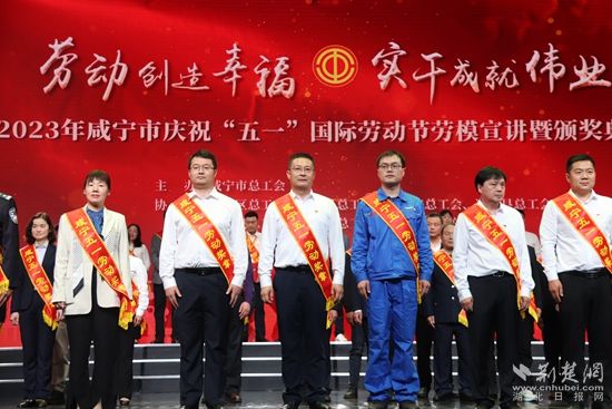 李志強(qiáng)(左三)榮獲咸寧五一勞動(dòng)獎(jiǎng)?wù)?。黃錚 攝