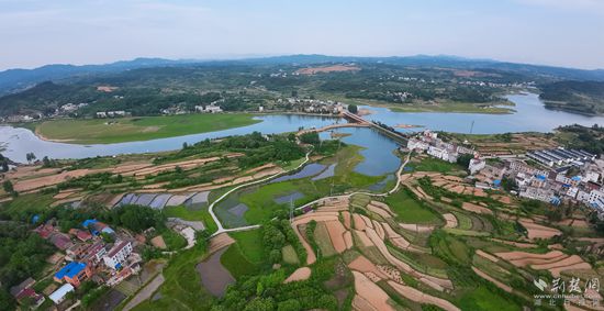 圖為順河鎮(zhèn)鎮(zhèn)區(qū)、河流流域、鄉(xiāng)村公路及油茶基地。胡小軍、肖杰 攝
