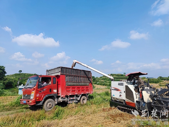 荊楚網(wǎng)(湖北日?qǐng)?bào)網(wǎng))訊(通訊員 彭鑫春)又是一年收麥忙,麥浪滾滾滿地黃。近日,在碧石渡鎮(zhèn)樟樹(shù)嶺村,四臺(tái)收割機(jī)正在田間穿梭,留下豐收的“軌跡”,麥稈化成碎茬后迅速返田,拉開(kāi)了小麥開(kāi)鐮收獲的序幕。
