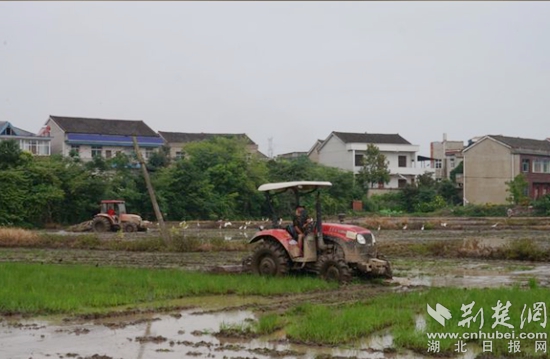 荊楚網(wǎng)(湖北日報(bào)網(wǎng))訊(通訊員丁元中)5月30日,鄂城區(qū)汀祖鎮(zhèn)鳳凰村種田大戶徐師傅在搶收完小麥后,迎來了千余畝水稻種植的黃金時(shí)期。
