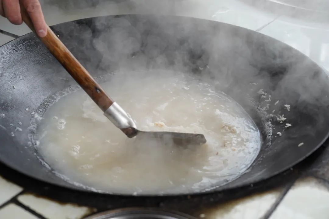再將米湯傾注鍋內(nèi)