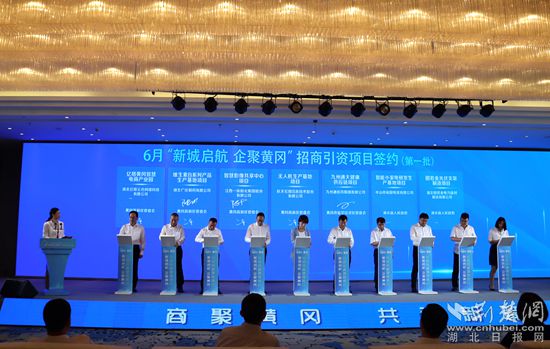 活動中,中國誠信信用管理公司與市政府簽訂戰(zhàn)略合作協(xié)議。在6月“新城啟航、企聚黃岡”招商引資主題推介會上,黃岡市集中簽約產(chǎn)業(yè)項(xiàng)目26個,涉及大宗物資物流體系、空港經(jīng)濟(jì)、區(qū)域大市場、文化旅游等三產(chǎn)項(xiàng)目12個,占比近50%。