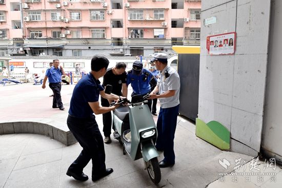 7月2日起,該小區(qū)物業(yè)在樓道醒目處張貼《關(guān)于禁止電動自行車、摩托車在樓道內(nèi)停放的公告》,要求電動自行車必須停放至小區(qū)停車棚或劃線區(qū)域,并于7月5日前整改完畢,否則將予以拖離。7日上午,聯(lián)合檢查組對小區(qū)個別仍然停放在樓道內(nèi)的車輛進行依法清理移除。