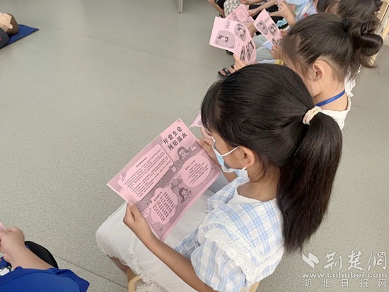 活動結(jié)束后,紅十字志愿者和“向日葵親子小屋”的輔導(dǎo)員進一步對孩子們進行了暑期安全知識宣傳,發(fā)放防溺水教育宣傳單。