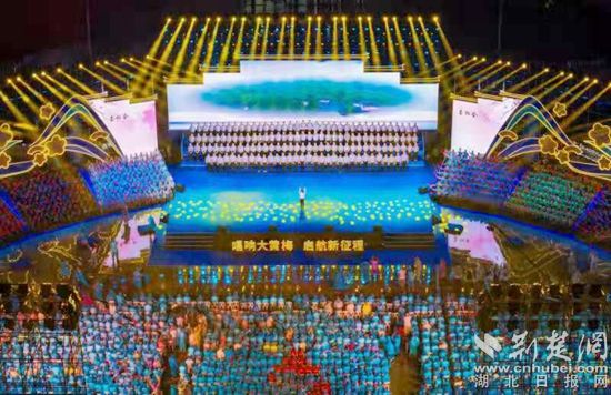 本屆黃梅戲藝術(shù)節(jié)的另一大特色是設(shè)立分會場。黃梅縣是千年古縣,更是黃梅戲藝術(shù)的發(fā)源地,本屆黃梅戲藝術(shù)節(jié)特別設(shè)置了黃梅縣分會場“唱響大黃梅”——一曲原創(chuàng)黃梅歌《靈潤黃梅》奏響演出序章,黨群口、宣傳口、教育口、政府口、政法口、小池鎮(zhèn)、孔壟鎮(zhèn)、黃梅鎮(zhèn)和全國戲迷等11個黃梅戲演唱方陣身著彩裝競唱黃梅戲經(jīng)典唱段,千余人齊唱《家在黃梅》,宏大的舞臺,震撼的現(xiàn)場,讓戲迷們著實過足了戲癮。