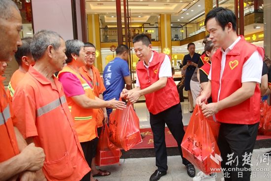 荊楚網(wǎng)(湖北日報網(wǎng))訊(通訊員 曹競帆 張萍)“這個愛心大禮包太實用了。”7月19日,在黃梅縣“愛心冰柜 清涼梅城”新時代文明實踐志愿服務(wù)活動啟動儀式上,拿到裝有水果罐頭、綠豆的防暑降溫禮包后,該縣黃梅鎮(zhèn)環(huán)衛(wèi)工人吳大姐微笑著豎起大拇指,“有了這些‘愛心冰柜’,我和工友們以后補(bǔ)水就很方便了!”