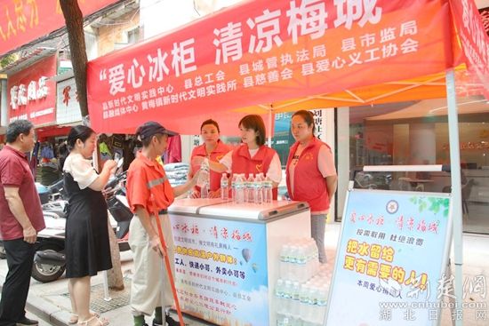 據(jù)悉,黃梅縣“愛心冰柜 清涼梅城”新時代文明實踐志愿服務(wù)活動由該縣新時代文明實踐中心牽頭發(fā)起,將從7月中旬持續(xù)開展至8月底。目前,黃梅中心城區(qū)設(shè)置的3個“愛心冰柜”志愿服務(wù)點均已上崗。