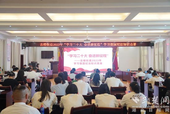 荊楚網(wǎng)(湖北日報網(wǎng))訊(通訊員丁元中)7月26日下午,鄂城區(qū)古樓街道舉辦“學(xué)習(xí)二十大,奮進(jìn)新征程”學(xué)習(xí)強(qiáng)國紀(jì)法知識競賽。全街社區(qū)、股經(jīng)社、中心學(xué)校、市場監(jiān)管所、飛鵝衛(wèi)生服務(wù)中心、怡亭銘衛(wèi)生服務(wù)中心、街辦機(jī)關(guān)等20支代表隊(duì)60名選手參賽。