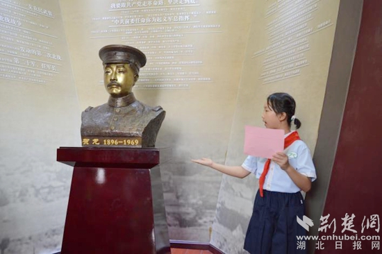 接著大家來到了賀龍軍部舊址研學(xué)點(diǎn)。賀龍軍部舊址紀(jì)念館是賀龍任軍長期間唯一一 座保存完整、有據(jù)可查的北伐戰(zhàn)爭時(shí)期的軍部舊址,是賀龍同志早期革命活動(dòng)的重要實(shí)物見證,具有重要的歷史價(jià)值。在本站點(diǎn)共計(jì)10位“紅領(lǐng)巾”小小講解員為大家?guī)砹思t色歷史的回顧。