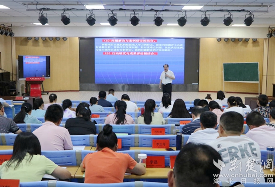 下午,武漢市梅苑學(xué)校副校長、特級教師宋紅兵作題為《名師工作室的活動策劃和方案制定》的主題講座。他結(jié)合自己熟悉的六位教師成長經(jīng)歷,分別從名師內(nèi)涵與特質(zhì)、名師案例與啟示、名師工作室活動策劃與方案等方面展開,案例真實鮮活,講解深入透徹,現(xiàn)場氣氛熱烈。