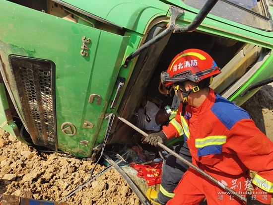 當(dāng)日上午8時(shí)55分,黃石市消防救援支隊(duì)指揮中心接到報(bào)警稱,鐵山區(qū)鹿獐山大道一貨車側(cè)翻,有一人被困。接警后,友愛路站消防救援人員立即趕赴現(xiàn)場(chǎng)處置。