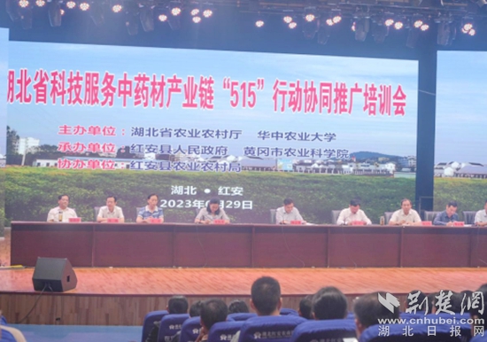 今年?6月28日,湖北省科技服務(wù)中藥材產(chǎn)業(yè)鏈“515”行動(dòng)協(xié)同推廣培訓(xùn)會(huì)在紅安縣潤康農(nóng)業(yè)發(fā)展有限公司召開。