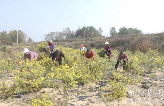 近年來,紅安縣七里坪鎮(zhèn)因地制宜謀發(fā)展,做活野菊花文章。據(jù)鎮(zhèn)長黃紅星介紹,通過多年努力,該鎮(zhèn)現(xiàn)已建成一個(gè)由南到北、全長20公里的菊花產(chǎn)業(yè)帶。這個(gè)產(chǎn)業(yè)帶途經(jīng)60多個(gè)村,沿線種植野菊花3萬余畝,集科研、種植、加工、銷售、旅游于一體,年接待游客10萬人次以上。