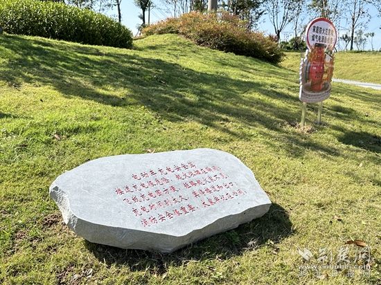 走進公園,園內(nèi)“消防口袋公園”標識牌醒目奪彩,沿路兩邊設(shè)置了匠心雕刻的消防常識石書、119消防座椅、消防器材石器以及花草叢中的宣傳提示牌,都不斷提醒每一位過往的群眾關(guān)注消防安全。公園里的游樂設(shè)施以及憨態(tài)可掬的消防員卡通雕塑也吸引了不少家長和孩子前來游玩和拍照打卡?!靶∨笥讯枷矚g過來,玩耍過程中接觸了消防安全知識,大人也跟著學(xué)?!奔易“倩ǘ诘氖忻駝⑴啃Φ?。