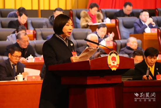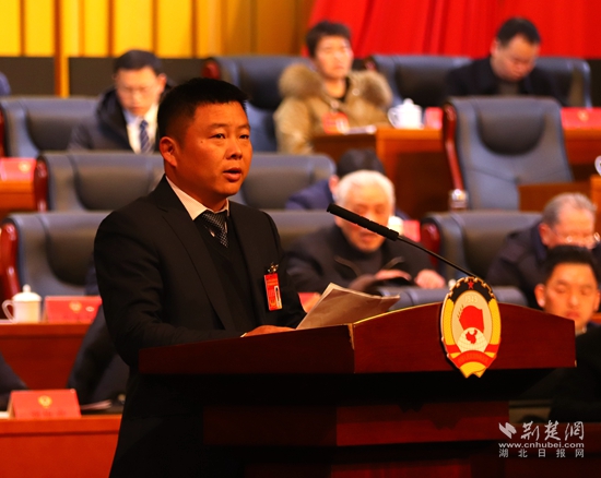咸安區(qū)政協(xié)副主席雷春作提案工作報(bào)告。黃錚 攝