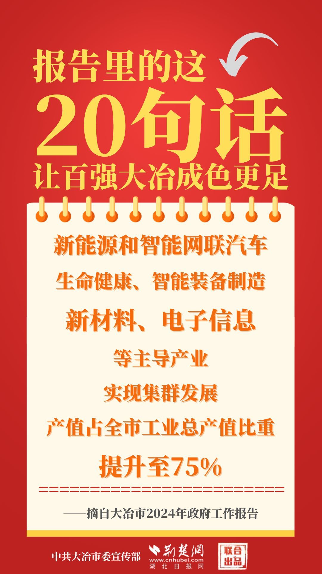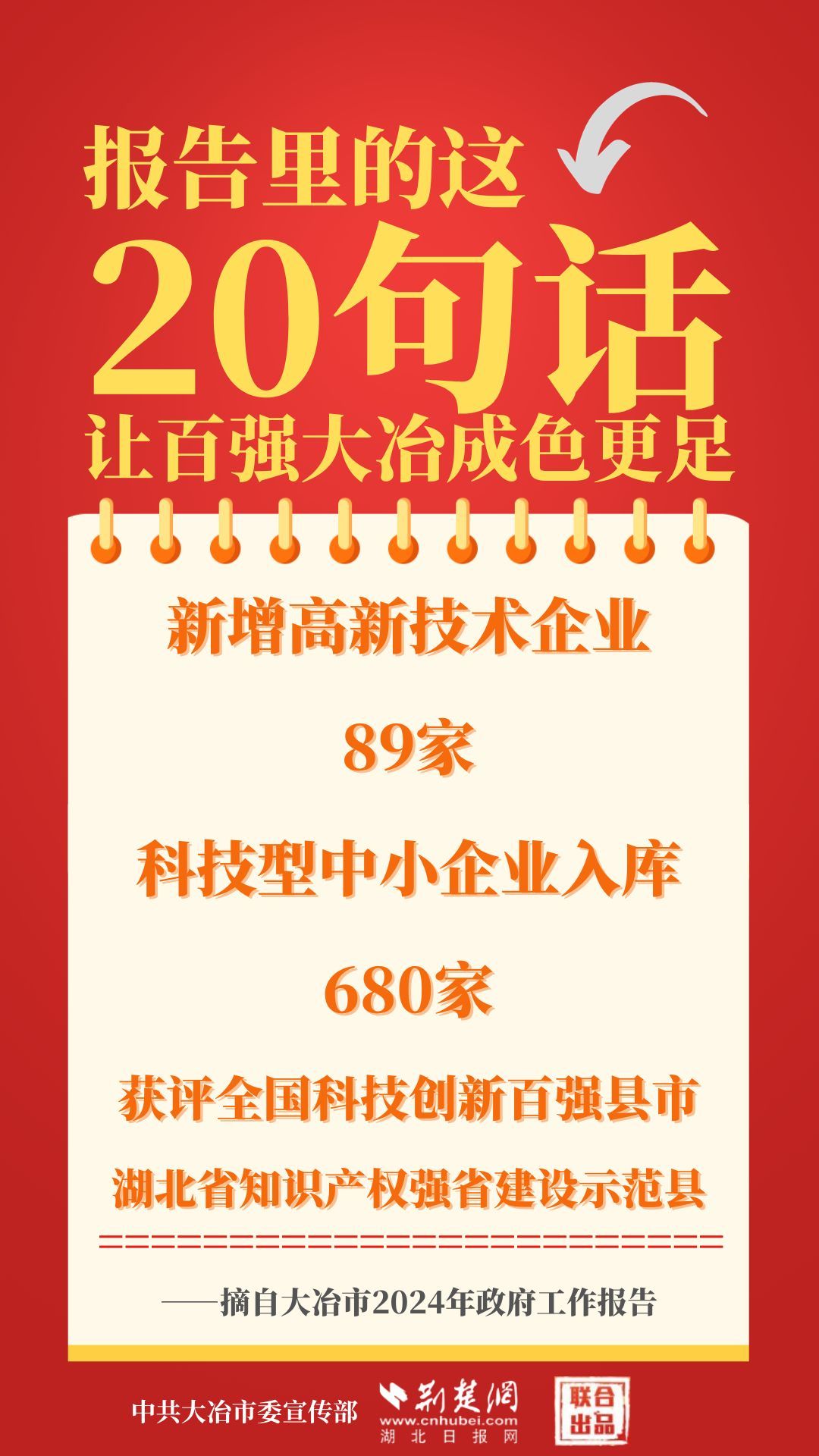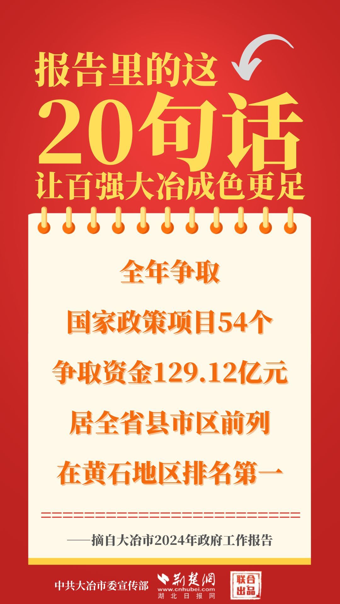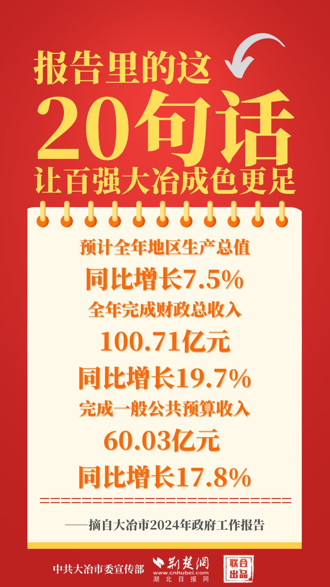 1月12日,大冶市第七屆人民代表大會第四次會議開幕,大冶市委副書記、市長孫輒作政府工作報告。報告里的這20句話,讓百強(qiáng)大冶成色更足。
