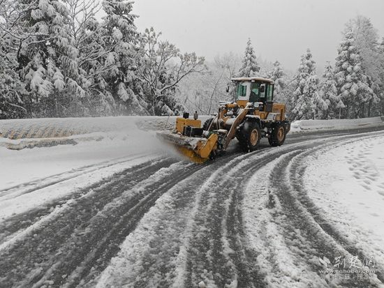 在各重點路段,工作人員迅速設(shè)置提示牌,并及時砍伐被積雪壓倒的楠竹等樹木。此外,還通過人工鏟雪、機械撒工業(yè)鹽等措施,爭取在最短的時間內(nèi)搶通受冰雪影響的道路。