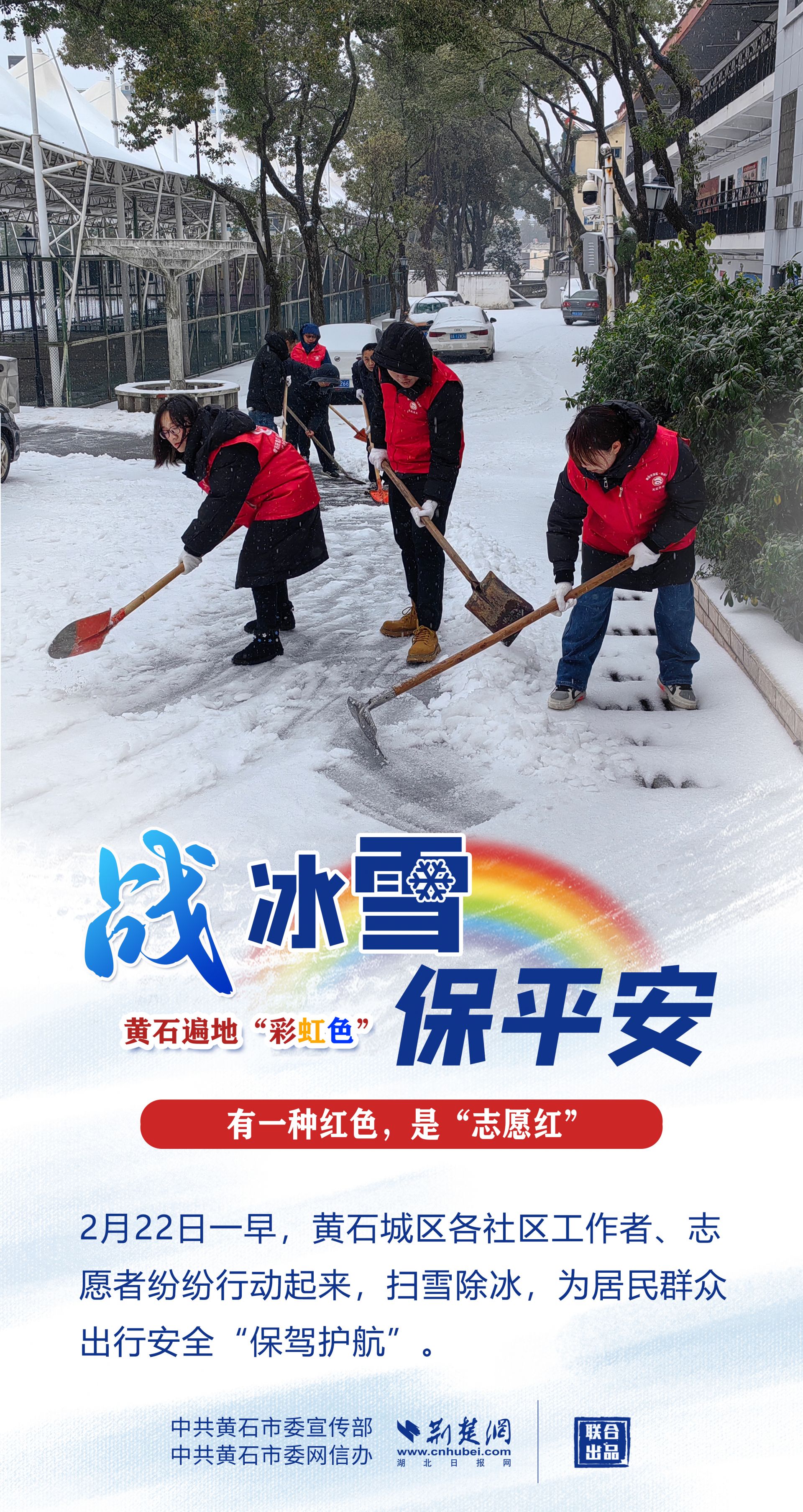 志愿紅、應(yīng)急橙、警察黃、郵政綠……黃石各地、各部門以雪為令,迎風(fēng)戰(zhàn)雪,市縣兩級(jí)2.4萬下沉黨員干部迅速到位,各項(xiàng)工作快速有序鋪開,全力保障人民群眾生命財(cái)產(chǎn)安全,最大限度減輕冰雪帶來的影響。