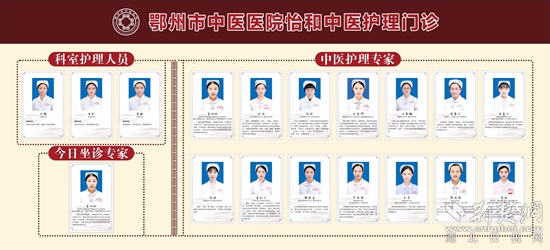 2022年5月12日,鄂州市中醫(yī)醫(yī)院開設(shè)怡和中醫(yī)護理門診,是全市首家集護理、科研、教學(xué)于一體具有中醫(yī)特色的護理門診,開展灸法、罐法、刮痧、穴位貼敷、放血、中藥熏藥、穴位注射等50余項中醫(yī)特色護理療法,為廣大人民群眾提供專業(yè)的“簡便驗廉”中醫(yī)特色護理療法,以及中醫(yī)膳食、生活起居、情志調(diào)攝、中醫(yī)養(yǎng)生指導(dǎo)。