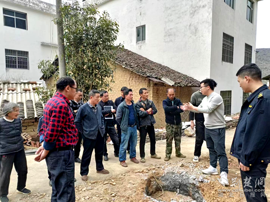 “你這新房墻修在這兒,屋檐都占到路了,別說外人不同意了,我第一個(gè)不允許”,村民鄒治德的舊宅因垮塌拆除后,申請(qǐng)?jiān)贩?,但因?yàn)榕f址地基緊挨村道,3米的寬路行至此處只余2.6米,其親叔鄒生今聽聞此事,說出主持公道的話。審批小組聞?dòng)嵑蠹皶r(shí)趕到現(xiàn)場(chǎng),進(jìn)行溝通并展開政策宣傳。