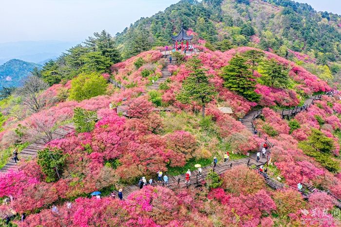 涂寶峰說(shuō),來(lái)黃岡,讓我們一起在最美的人間四月,徜徉在龜峰山10萬(wàn)畝的杜鵑花海中;一起登大別山川百里生態(tài)畫(huà)廊,行走在春和景明的詩(shī)畫(huà)之中;一起泛舟于赤壁之下、漫步于遺愛(ài)湖畔,感悟東坡先生“一蓑煙雨任平生”的豁達(dá)。