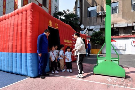 在操場(chǎng),消防員指導(dǎo)小朋友試穿“滅火戰(zhàn)斗服”、佩戴消防頭盔、體驗(yàn)火場(chǎng)逃生帳篷,詳細(xì)講解火災(zāi)事故的危險(xiǎn)性以及如何正確撥打火警電話、火場(chǎng)逃生自救方法等消防安全知識(shí),讓小朋友們對(duì)火災(zāi)有了更深刻地認(rèn)識(shí)。