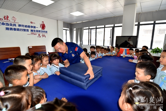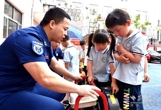 當(dāng)天上午,在黃石市政府機(jī)關(guān)幼兒園教師的帶領(lǐng)下,90余名小朋友走進(jìn)華新路消防救援站,“零距離”體驗(yàn)消防員工作生活、感受消防文化、學(xué)習(xí)消防知識(shí)。