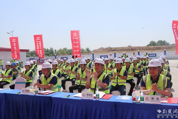 荊楚網(wǎng)(湖北日報網(wǎng))訊(記者陶輝 通訊員劉聰 陳玨 秦楣)紅旗招展,誓言鏗鏘。5月10日,在位于麻城市鼓樓街道秦家崗的合武高鐵湖北段HWZQ-1標(biāo)4號拌和站,一場鼓舞人心的勞動競賽推進會火熱舉行。
