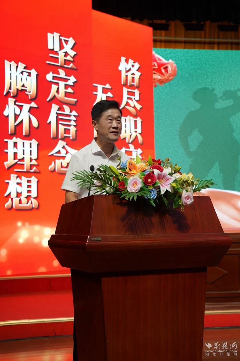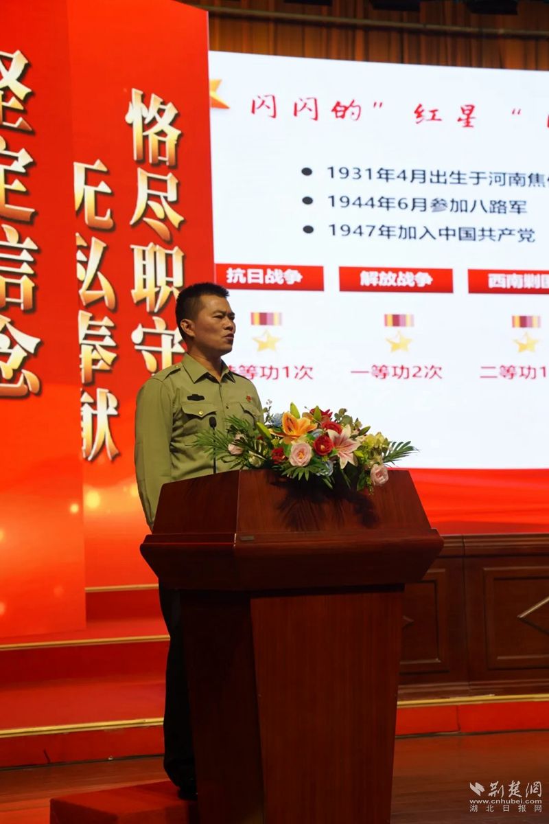 鄂城區(qū)退役軍人、荊楚楷模最美退役軍人、西山街道工作人員石筆宣講。