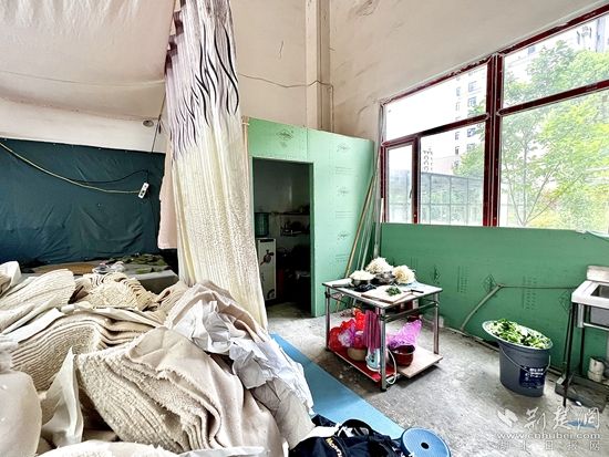不僅如此,在大約50平方米的空間里,混亂擺放著十幾臺服裝加工機器,加工設備旁還放置著燃氣灶、廚具等一應俱全的做飯工具,且未進行有效防火分隔。用來“保命”的室內消防栓,也被用作置物臺放置各種雜物。