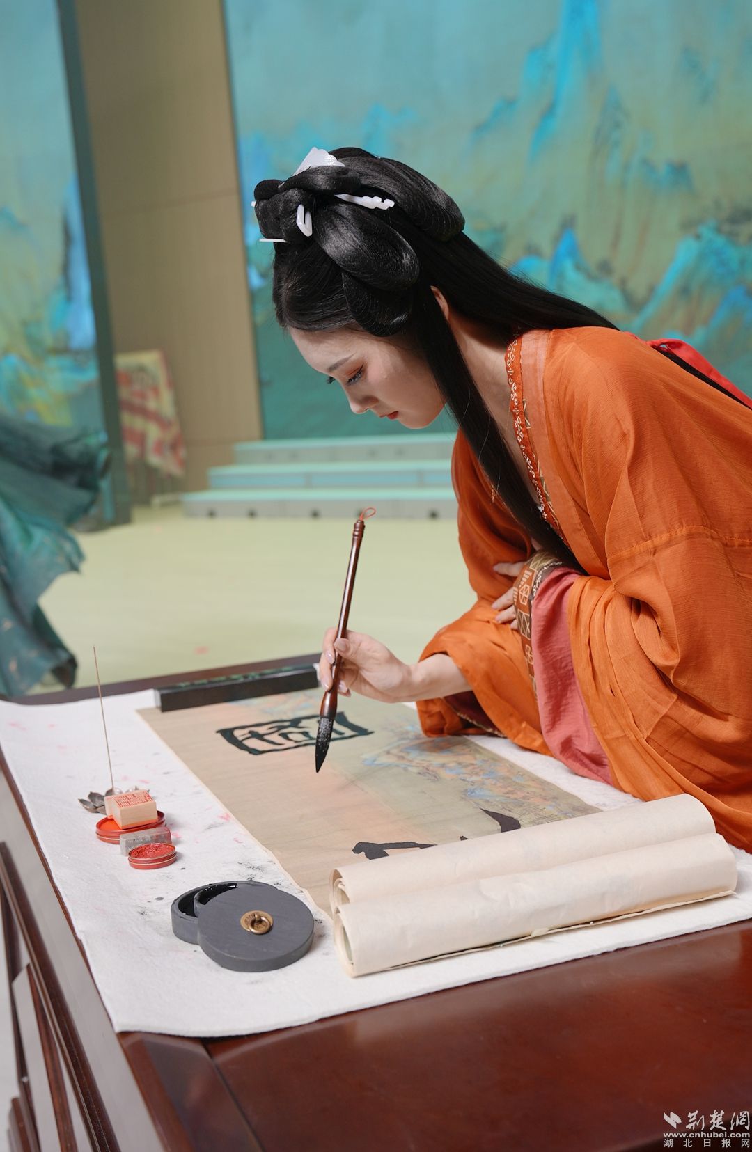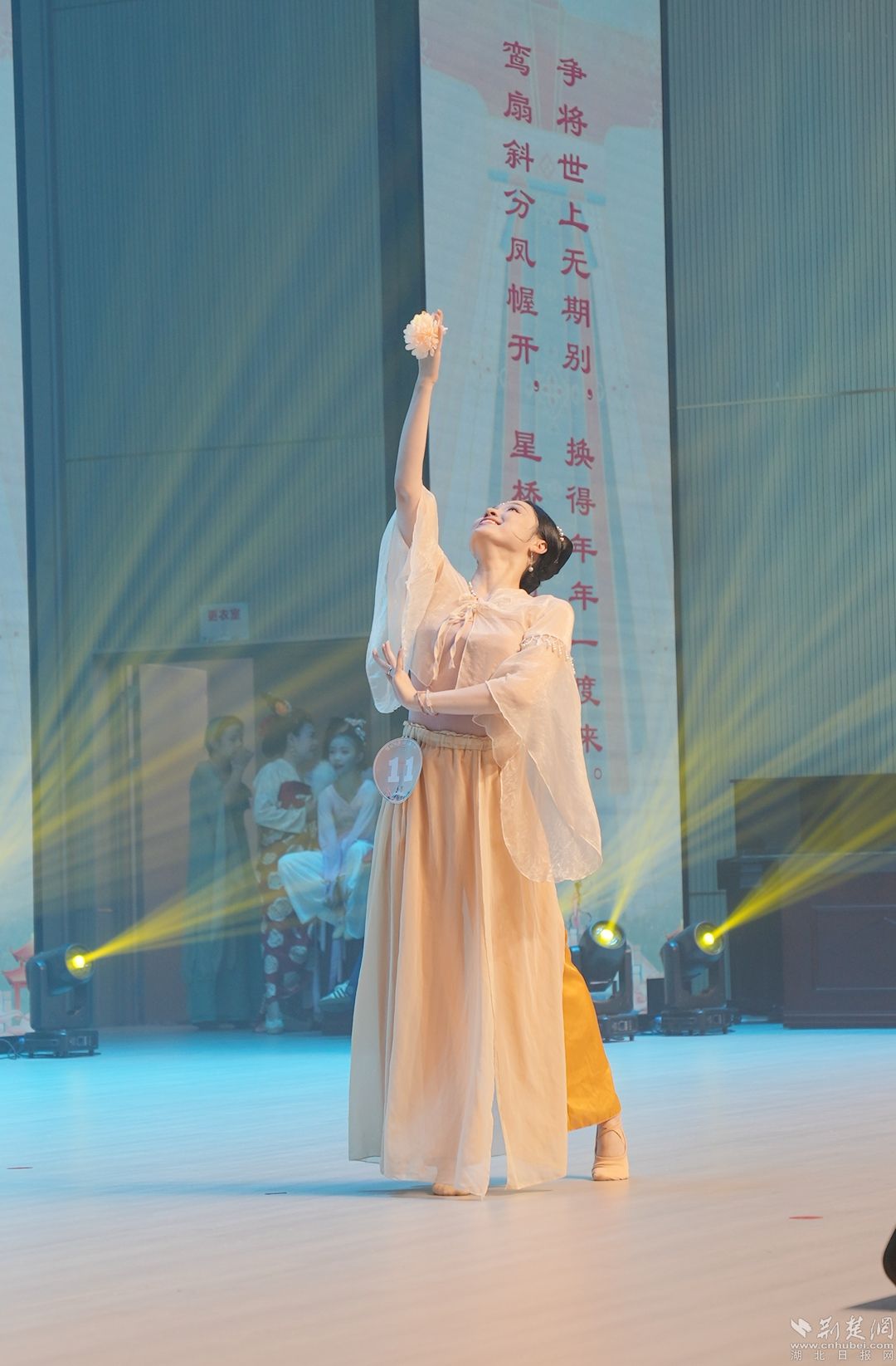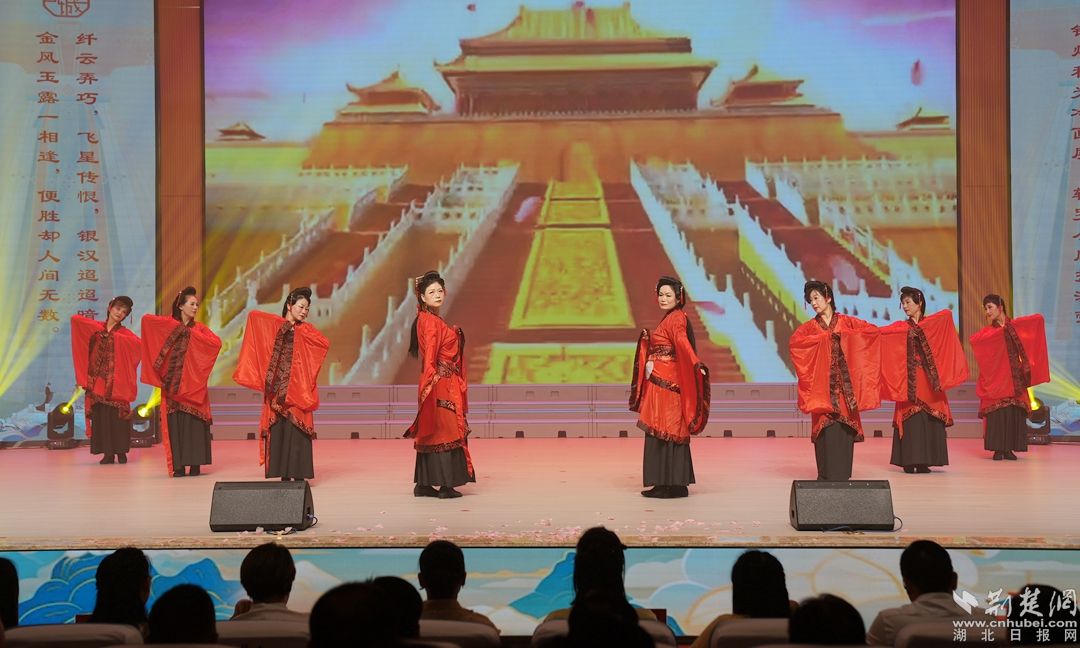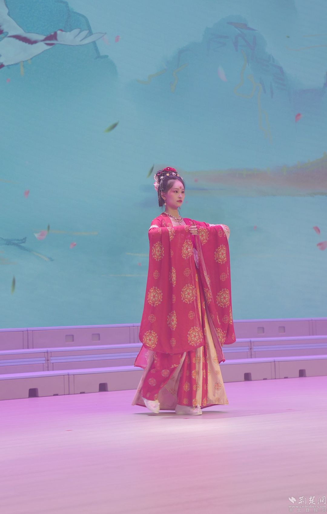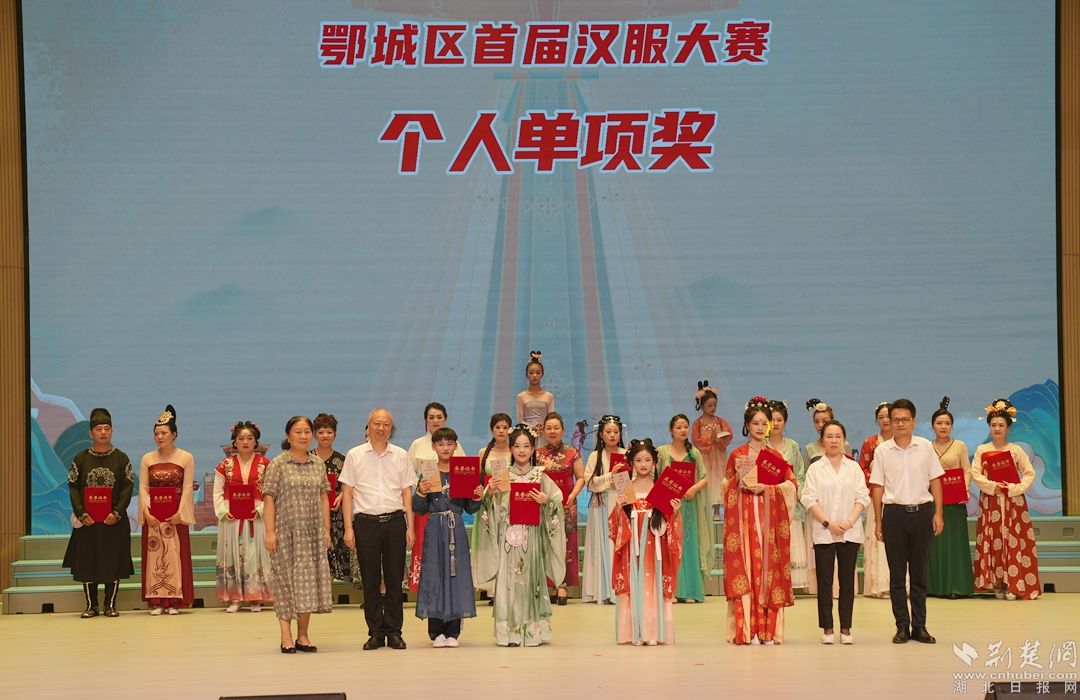 來自鄂城各地的漢服愛好者身著絢麗的服飾走上“T臺”,以古雅優(yōu)美的儀態(tài)和造型,為觀眾帶來一場“穿越時空”的視覺盛宴。隨著中國漢服文化的興起,眾多漢服愛好者逐漸考究妝化、禮儀、頭飾等細節(jié),漢服文化的深層次內(nèi)涵進一步豐富。