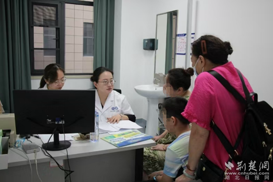 在診室坐診的便是武漢協(xié)和醫(yī)院金銀湖院區(qū)兒科負(fù)責(zé)人蔡馥丞副教授和黃石市第二醫(yī)院兒科副主任張芷銘。在診室門前,前來(lái)就診人員排起長(zhǎng)隊(duì),許多家長(zhǎng)眉頭緊皺,臉上寫著同一個(gè)疑問:我的孩子怎么了?