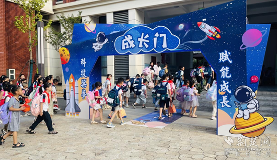 在黃金山第四小學(xué)教聯(lián)體本部校區(qū),孩子們正歡快地路過成長(zhǎng)門。他們臉上洋溢著對(duì)未來的憧憬,小小的身影充滿著希望。