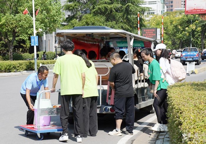 完成報到手續(xù)后,新學(xué)子們帶上行李,乘坐觀光車直達(dá)宿舍,同時,也開啟了他們的校園探索之旅。記者發(fā)現(xiàn),這些校車觀光車不僅外觀新穎、內(nèi)飾舒適,司機(jī)還饒有興致地為新學(xué)子們詳細(xì)介紹校園的歷史沿革、建筑風(fēng)格、教學(xué)設(shè)施以及各個學(xué)院的特色。