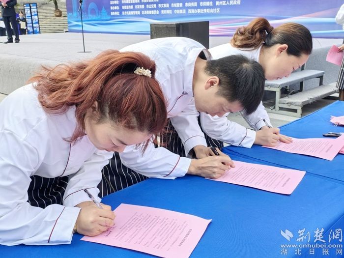 活動(dòng)現(xiàn)場,黃岡市消費(fèi)者委員會(huì)、黃岡市市場監(jiān)管局向廣大消費(fèi)者、經(jīng)營者、行業(yè)協(xié)會(huì)和政府職能部門發(fā)布了放心消費(fèi)倡議,公布了參與學(xué)生新街放心消費(fèi)承諾活動(dòng)的經(jīng)營主體名單。經(jīng)營者代表現(xiàn)場作出放心消費(fèi)公開承諾,并被授牌學(xué)生新街首批“放心消費(fèi)承諾單位”。