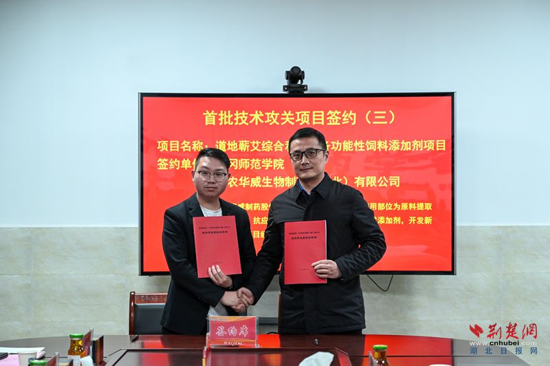 揭牌儀式上,活動現(xiàn)場,黃岡師范學(xué)院黨委副書記、校長漆昌柱和黃岡市科技局黨組書記姜寬分別為省級重點實驗室學(xué)術(shù)委員會專家頒發(fā)聘書。重點實驗室分別與湖北衛(wèi)爾康現(xiàn)代中藥有限公司、農(nóng)華威生物制藥(湖北)有限公司等6家企業(yè)簽訂產(chǎn)業(yè)關(guān)鍵技術(shù)攻關(guān)項目協(xié)議。項目涵蓋道地藥材多個研究與開發(fā)領(lǐng)域的技術(shù)攻關(guān),總項目經(jīng)費達370萬元。