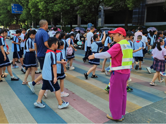 從2019年開(kāi)始,作為志愿者的宋慶莉,每天穿梭于車流之間,守護(hù)上下學(xué)孩子安全,已有6個(gè)年頭。學(xué)生、家長(zhǎng)親切地稱呼69歲的宋慶莉“馬路奶奶”,在她的帶動(dòng)下,越來(lái)越多的志愿者家長(zhǎng)加入護(hù)學(xué)隊(duì)伍。