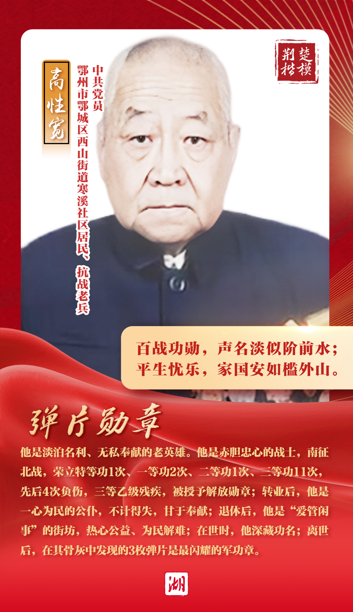 高性寬,男,漢族,1931年4月出生,河南省博愛(ài)縣人,2024年4月28日,在湖北省鄂州市鄂城區(qū)去世。省楹聯(lián)學(xué)會(huì)這樣講述他:百戰(zhàn)功勛,聲名淡似階前水;平生憂(yōu)樂(lè),家國(guó)安如檻外山。橫批:彈片勛章。