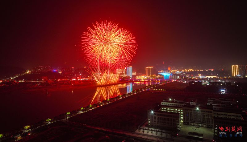 荊楚網(wǎng)(湖北日?qǐng)?bào)網(wǎng))訊(記者 胡小軍 通訊員 吳滕鈺)10月2日晚,英山縣城區(qū)一河兩岸霓虹閃爍,親水步道上鮮艷的國(guó)旗迎風(fēng)飄揚(yáng),處處洋溢著喜慶熱烈的節(jié)日氣氛。大別山文學(xué)廣場(chǎng)周圍成為縣城熱度最高的地區(qū),上萬(wàn)名市民、游客從四面八方匯集于此,大家翹首以盼,提前拿出手機(jī),選好角度,用鏡頭定格即將開(kāi)始的視覺(jué)盛宴。