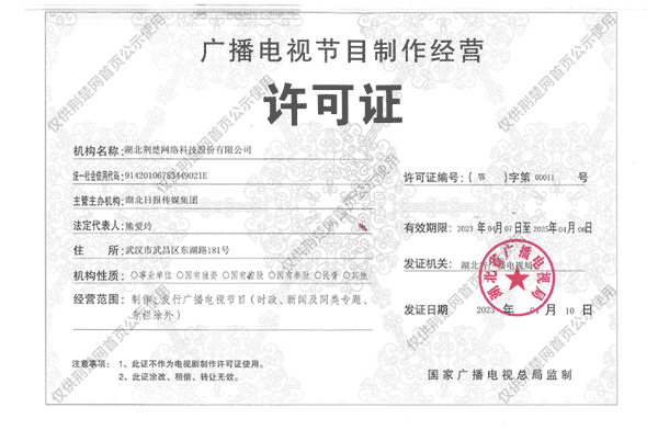 廣播電視節(jié)目制作經(jīng)營(yíng)許可證(鄂)字第00011號(hào)