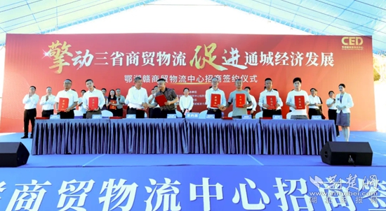 通城縣在鄂湘贛商貿(mào)物流中心項(xiàng)目建設(shè)現(xiàn)場(chǎng)舉行招商簽約儀式