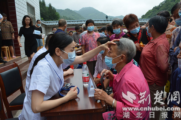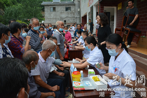 楊柳村位于位于鄖陽(yáng)區(qū)西南部的大山深處,距離十堰市區(qū)50余公里,是十堰市稅務(wù)局鄉(xiāng)村振興聯(lián)系點(diǎn),村里以老年人居多。聽(tīng)說(shuō)市人民醫(yī)院的專家要來(lái)義診,村民們?cè)缭缇蛠?lái)到村委會(huì),在市稅務(wù)局駐村工作隊(duì)的精心組織下,佩戴口罩排起了長(zhǎng)隊(duì)。簡(jiǎn)短的介紹儀式結(jié)束后,來(lái)自市人民醫(yī)院心血管內(nèi)科、兒科、消化內(nèi)科、睡眠醫(yī)學(xué)科、內(nèi)分泌科等專業(yè)學(xué)科的8位專家便立即開(kāi)始為村民診療。