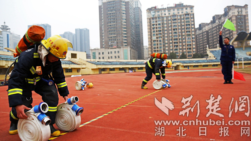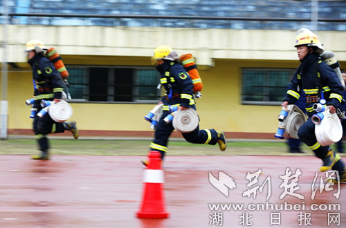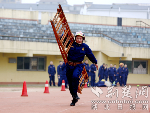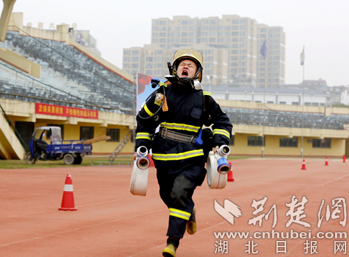 圖為開展60米肩梯跑科目現(xiàn)場(chǎng)。 通訊員 朱燕林?jǐn)z