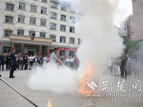 圖為消防宣傳員現(xiàn)場(chǎng)傳授滅火知識(shí)。 程遠(yuǎn)攝