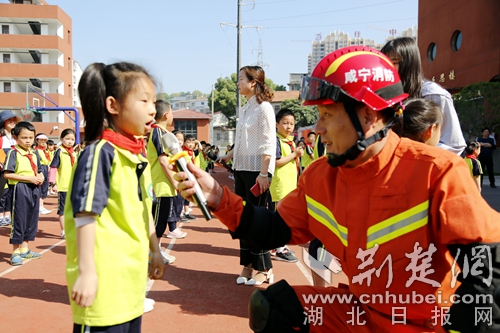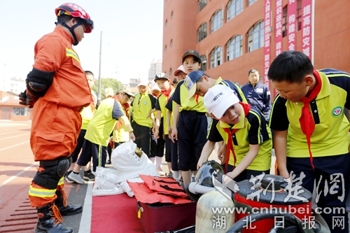 圖為師生參觀消防裝備器材現(xiàn)場(chǎng)。 官易洲攝