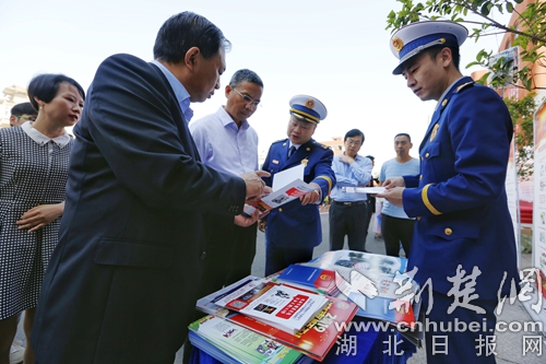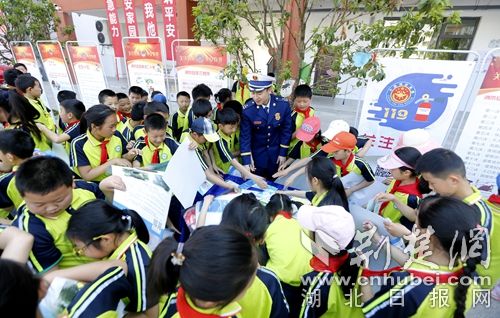 圖為發(fā)放消防宣傳資料現(xiàn)場(chǎng)。 官易洲攝
